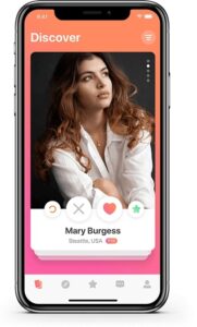 Tinder هو تطبيق مواعدة قائم على الموقع يسمح للمستخدمين بالتمرير لليمين إذا كانوا مهتمين بشخص ما أو التمرير لليسار إذا لم يكونوا كذلك. إذا قام اثنان من المستخدمين بالتمرير لليمين على الملفات الشخصية لبعضهما البعض، فهذا يعني أن هناك تطابقًا، ويمكنهما بدء الدردشة والتعرف على بعضهما البعض. تشتهر Tinder بواجهتها البسيطة وسهلة الاستخدام، مما يسهل على الأشخاص من جميع الأعمار استخدامها.